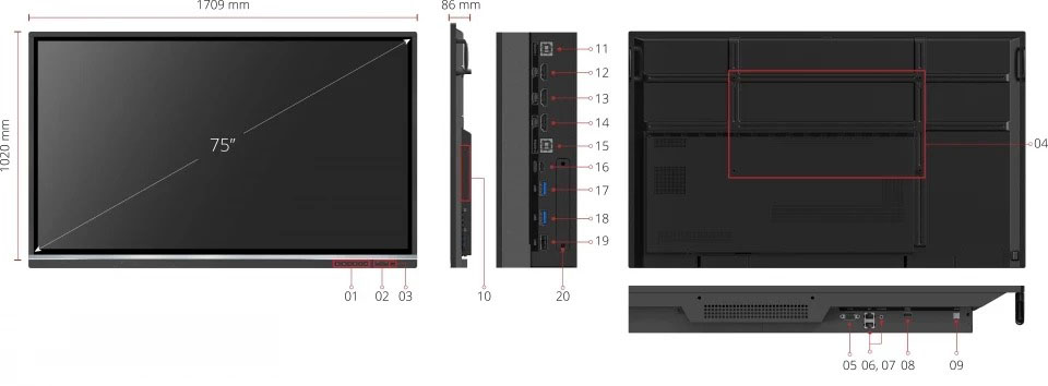 • Screen share via USB-C or wirelessly via myViewBoard Display and ViewBoard Cast with Airplay and Chromecast